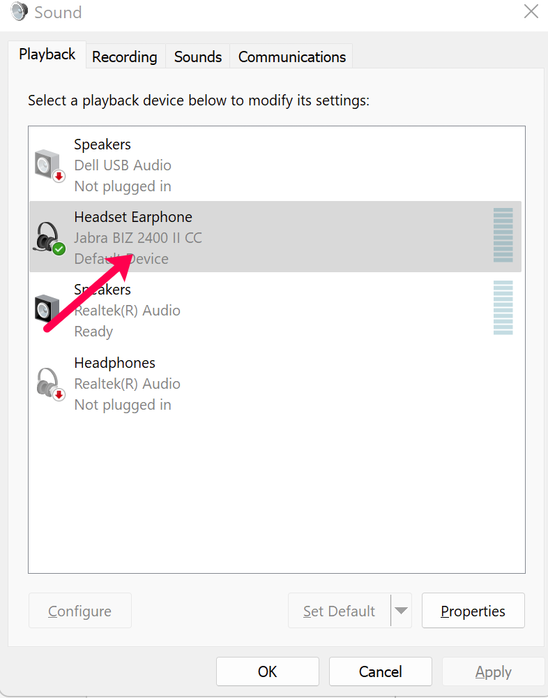 Double click on your sound option, in this case you can see I'm using a Jabra headset