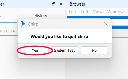 3. Restart Chirp and then restart your computer- when restarting chirp, make sure that you logout first from chirp then close the application by clicking on the x on the upper right corner.