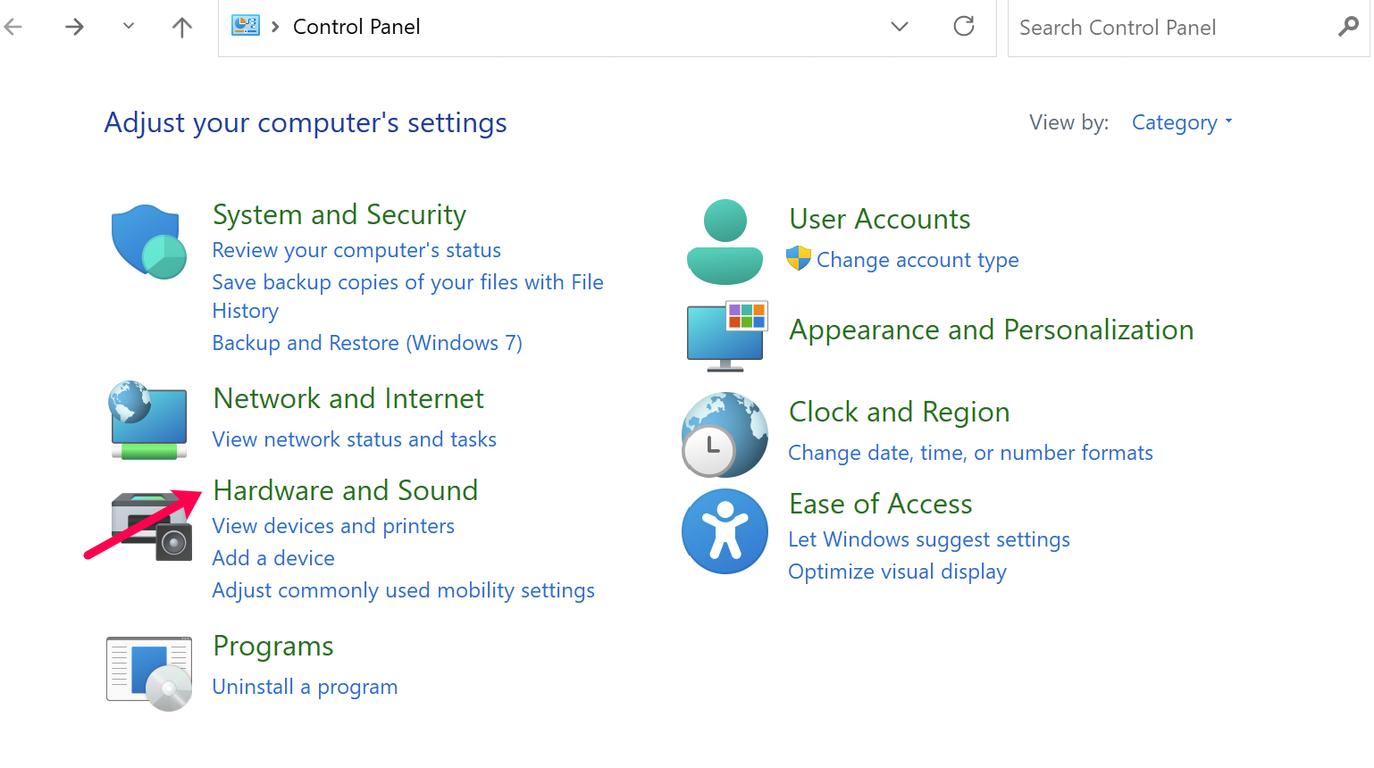 Plug in your USB headset the then open up your Control Panel see below and click Hardware and Sound