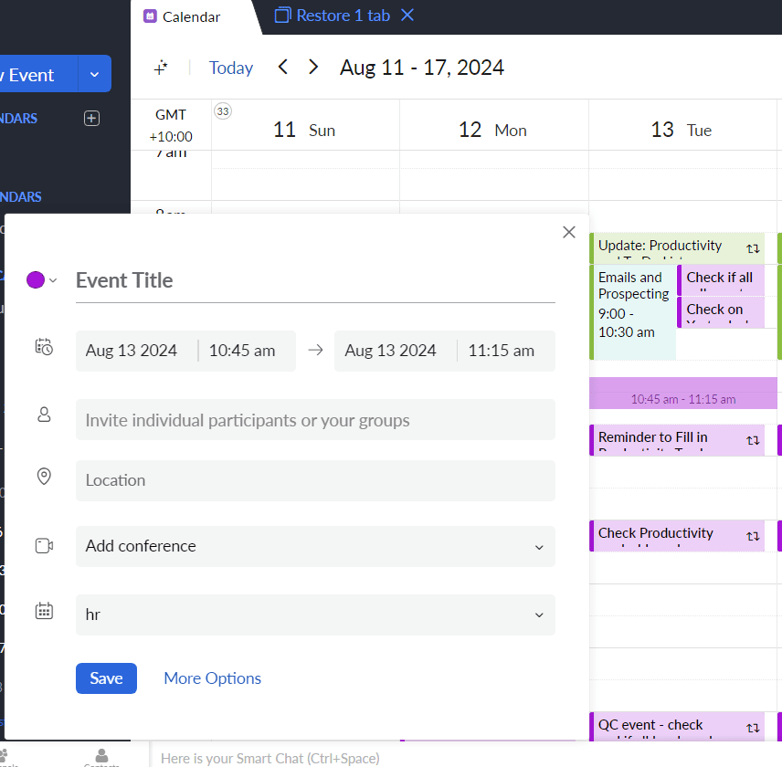 Once the interview is confirmed update your Zoho Calender by sending an invite to the candidate, follow the steps below on how to send the meeting invite: